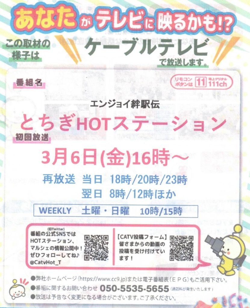 2月28日の絆駅伝が栃木ケーブルテレビで放映されます。